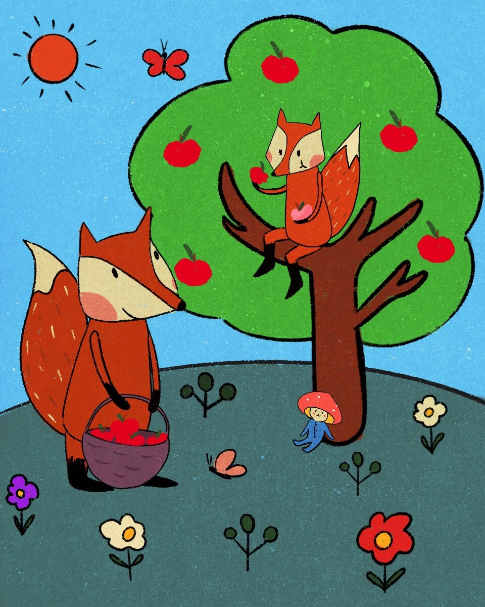 А ещё Ваня любил осень. Деревья перекрашивались в оранжевый цвет. Или, как говорил сам Ваня, в «цвет лисьей шубки». Листики на молодой осине, что росла неподалёку от норки, были похожи на маленькие лисьи хвостики. Мама спешила сделать запасы на зиму, и в эти дни норку заполнял аромат сушеных грибов и яблочного компота.