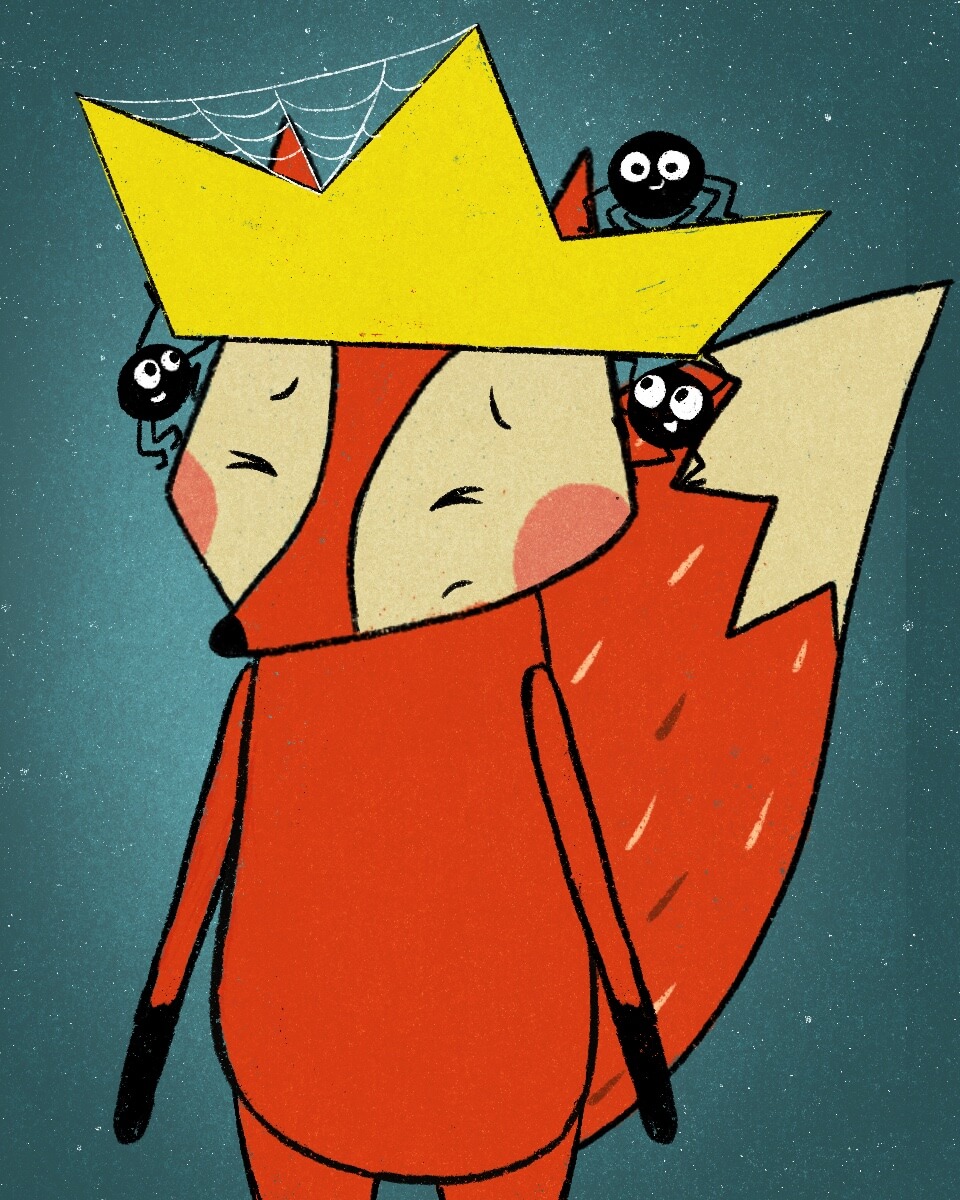 Паучок провёл лисёнка через маленькую щель в стене. По ту сторону оказалось целое Королевство. Всё в нём было соткано из паутины.