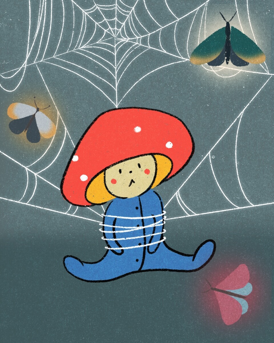 - Паучки опутали его паутиной вранья и посадили в темницу, - сказала бабочка, - Я отведу тебя к нему!