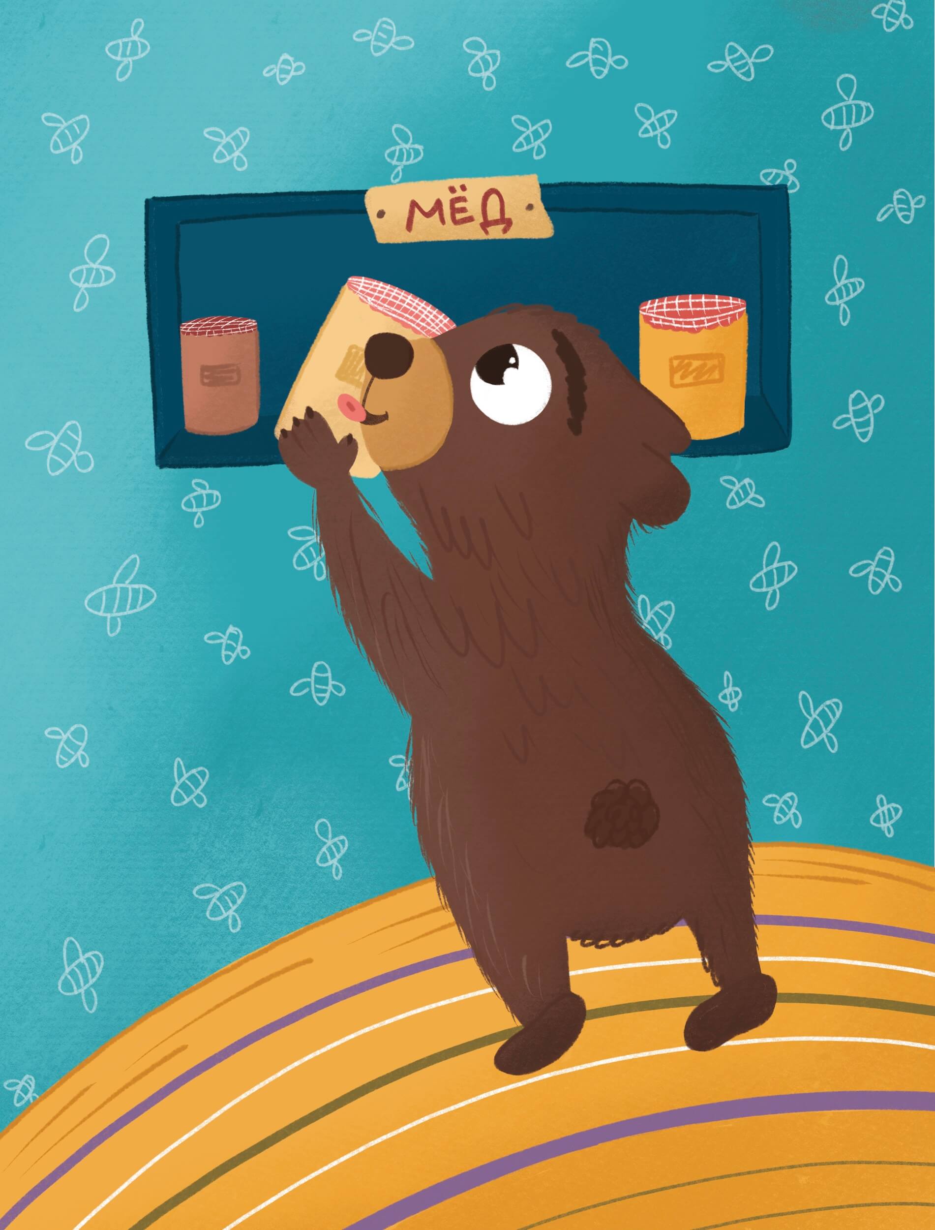 А ещё медвежонок очень мечтал стать взрослым. Быть взрослым – это так здорово! Никого не надо просить о помощи, сам всё умеешь: читать, писать, шнурки завязывать. Доставать до полки, где стоит любимое лакомство – конфеты.